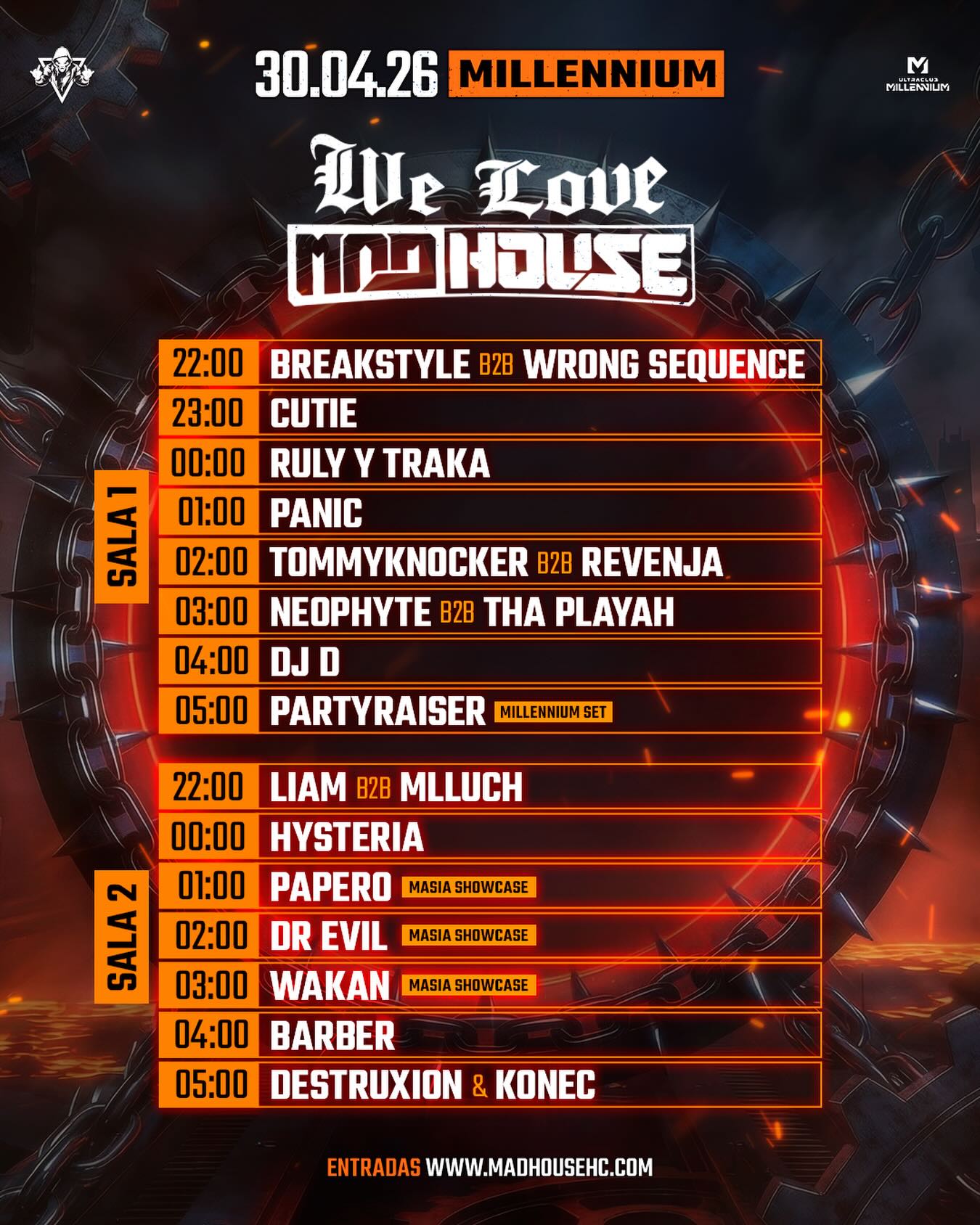 WE LOVE MADHOUSEBarber . Breakstyle . Cutie . DJ D . DJ Konec . Destruxion . Dr. Evil . Hysteria . Liam . Mlluch . Neophyte . Panic . Papero . Partyraiser . Revenja . Ruly y Traka . Tha Playah . Tommyknocker . Wakan . Wrong Sequence . |