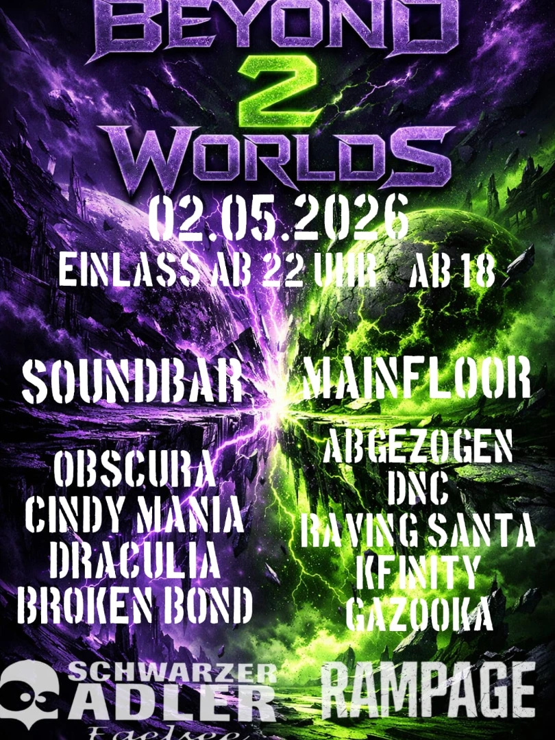 BEYOND 2 WORLDSAbgezogen . Broken Bond . Cindy Mania . DNC . Draculia . Gazooka . Kfinity . Obscura . Raving Santa . |