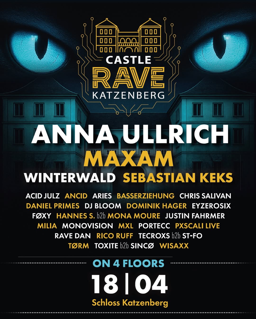 CASTLE RAVEAcid Julz . Anna Ulltich . Aries . Basserziehung . Chris Salivan . DJ Bloom . Daniel Primes . Dominik Hager . Eyzerosix . FØXY . Hannes S. . Justin Fahramer . MXL . Maxam . Milia . Mona Moure . MonoVision . Portecc . Pxscali . Rancido . Rave Dan . Rico Ruff . SINCØ . ST-FO . Sebastian Keks . Tecroxs . Toxite . TØRM . Winterwald . Wisaxx . |