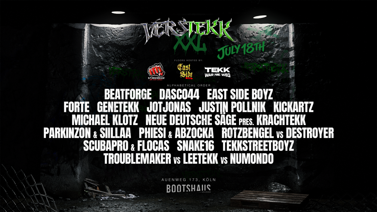 VERSTEKK DICHAbzocka . Beatforge . Dasco44 . Destroyer . Eastsideboyz . Flocas . Forte . Genetekk . JotJonas . Justin Pollnik . KickArtz . Kior . Leetekk . Michael Klotz . Numendo . Parkinzon . Phiesi . Rotzbengel . Science Of Destruction . Scubapro . Sillaa . Snake16 . Tekkstreetboyz . Troublemaker . |