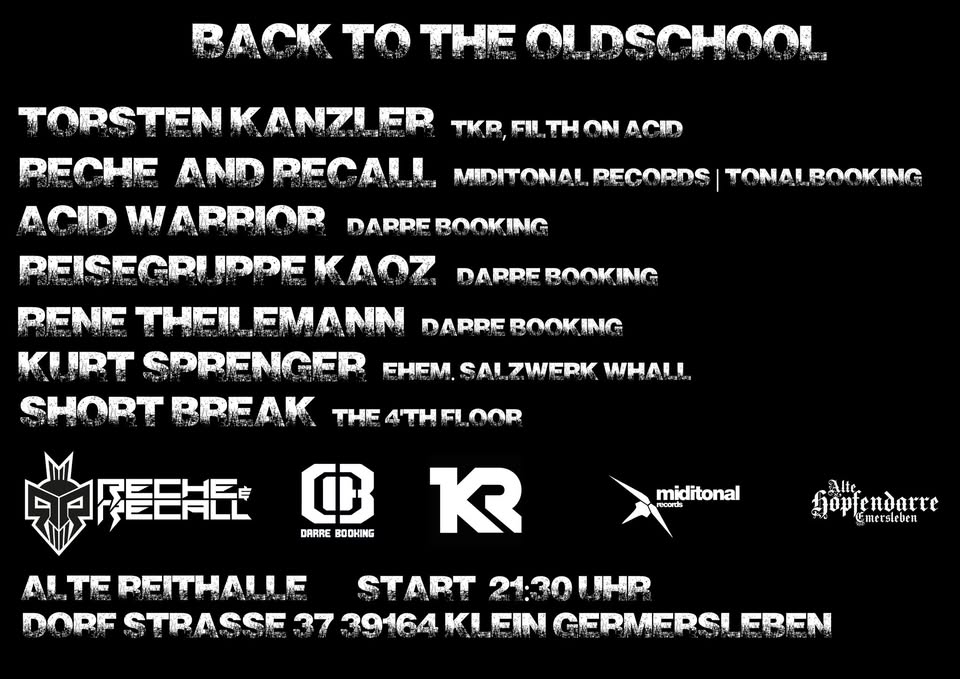 BACK TO THE OLDSCHOOLAcid Warrior . Kurt Sprenger . Reche & Recall . Reisegruppe Kaoz . Rene Theilemann . Short Break . Torsten Kanzler . |