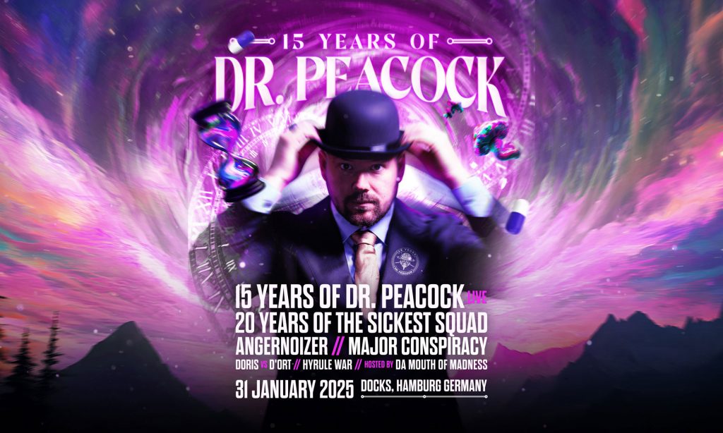 Am 31. Januar 2025 ist es so weit! Dr. Peacock, die unangefochtene Ikone der Hardcore-Szene, lädt euch ein zu einem spektakulären Jubiläum, das die Wände des Hamburger Docks zum Beben bringen wird! Kommt und entdeckt die pulsierende Welt seines einzigartigen Sounds bei 15 Years of Dr. Peacock.