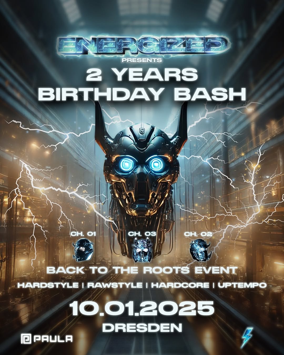 ⚡2 YEARS ENERGIZED BIRTHDAY BASH⚡🎁 WANN: 10.01.2025 WO: CLUB PAULA, DRESDEN Hard Techno, Hardstyle, Rawstyle, Hardcore, Uptempo