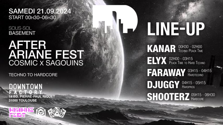 AFTER ARIANE FEST - COSMIC X SAGOUINS CREWOrganized by Basement DT,Be the first to stay informed about After Ariane Fest - Cosmic X Sagouins Crew's updates. Follow now !