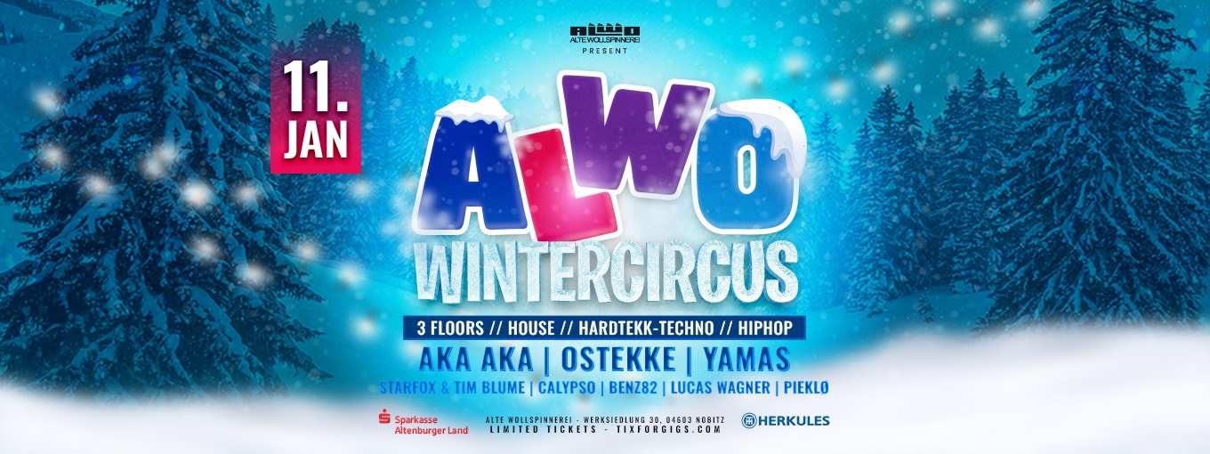 🎉 🌨 ALWO – WINTERCIRCUS 2025! 🌨 🎉 Am Samstag, den 11. Januar, tauchen wir ein in eine frostige Welt voller Beats und Magie! ❄️ Startet das neue Jahr mit einem richtigen Knall – was könnte besser sein, als die erste Alwo-Party des Jahres gebührend zu feiern? Euch erwarten: 🎪 Drei eiskalt dekorierte Floors mit einer einzigartigen, magischen Atmosphäre – Winterzauber garantiert! ❄️ 📸 Herkules-Fotobox-Lounge – haltet die besten Momente des Abends fest und nehmt die Erinnerungen mit nach Hause. Lasst uns gemeinsam das Jahr einläuten, wie es sich gehört: laut, wild und unvergesslich! ❄️ Sichert euch jetzt eure Tickets und seid dabei! 🎟️ 🎧 Techno, House und Black/Hip-Hop-Sounds, die ganze Nacht, bis in die frühen Morgenstunden! 🕙 Wann? 11. Januar 2025 22:00 - 05:30 Uhr 📍 Wo? ALWO - Alte Wollspinnerei Werksiedlung 30 04603 Nobitz ☃️🎿 SCHNEEHÖHLE – HOUSE 🎿☃️ Glitzernde Schneekristalle und coole Beats – die perfekte Fusion für alle House-Fans * AKA AKA * FUCHS & BLUME * LUCAS WAGNER * TONSEN 🥶🧊 EISBUNKER – TECHNO / HARDTEKK / HYPERTECHNO🧊🥶 Pulsierende Techno-Energie und ein frostiges Ambiente, das euch aufheizt! * YAMAS * OSTEKKE * PIEKLØ * CALYPSO 🦌🎶 HIRSCHKAMMER – BLACK & HIP-HOP 🎶🦌 Warme Berghütten-Vibes und Beats, die jeden Booty zum Beben bringen! * BENZ82 🎫 TICKETS: 🔹 Reguläres Ticket: 15,00 € 🔹 Erhältlich unter: www.alwo.club/eventstickets 📍 LOCATION: AlWo – Alte Wollspinnerei Werksiedlung 30 04603 Nobitz https://goo.gl/maps/FMe1gFDDUSKALMfH9 🔞 P16 mit Aufsichtsperson und Muttizettel: ➡️ Muttizettel hier downloaden http://www.partyzettel.de/ 🌟 Schnapp dir dein Ticket, tauche ein in die Winterwelt und tanz mit uns bis in den Morgen! 🌟