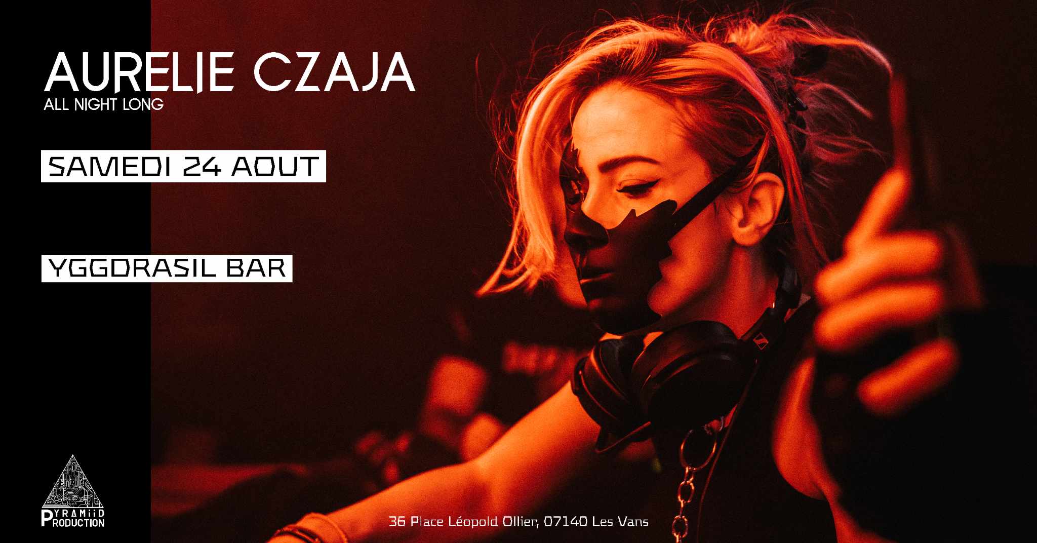 Aurélie Czaja est une DJ HardTechno Stasbourgeoise. Ses prestations relèvent plus d'un véritable show que d'un simple DJ set. En effet, vêtue d’un masque et de tenues travaillées autour de l’univers de la rave, elle propose une expérience visuelle sur la stage qui accompagne parfaitement ses sets. Elle maîtrise l’art de chauffer la foule en lui donnant ce dont elle a envie. Elle se démarque d’autres artistes HardTechno avec un style varié dans lequel s’entremêlent HardTrance, Techno Indus’, Tekno pouvant aller jusqu’à la Frapcore et Hardcore en fonction de l’humeur du public. Le tout parsemé de longs vocaux planants lors de build-up qui s’allient sur scène à des danses envoûtantes. Ayant fait ses preuves en tant que Show Woman essentiellement dans le grand-est de la France (et en Suisse), elle s’est récemment mise à la production musicale dans une visée de professionnalisation et d’ouverture à l’international. Ses deux premières tracks « BREAK THE SILENCE » et « CATACOMBE » présentes sur toutes les plateformes de streaming ont reçu un accueil prometteur de la part du public et de nombreux projets en cours verront le jour au cours des mois à venir. Gigs passés : Petit Salon (Lyon), Borderline (Suisse), Ninkasi (Lyon), Studio Saglio (Strasbourg), Grillen (Colmar)… Artistes avec qui elle a partagé la scène: Basswell, Parfait, BillX, Chôkô, Biomystic, Isabela Clerc... Tu auras L'HONNEUR de la rencontrer chez nous à l'Yggdrasil le samedi 24 aout à partir de 21h !!!!