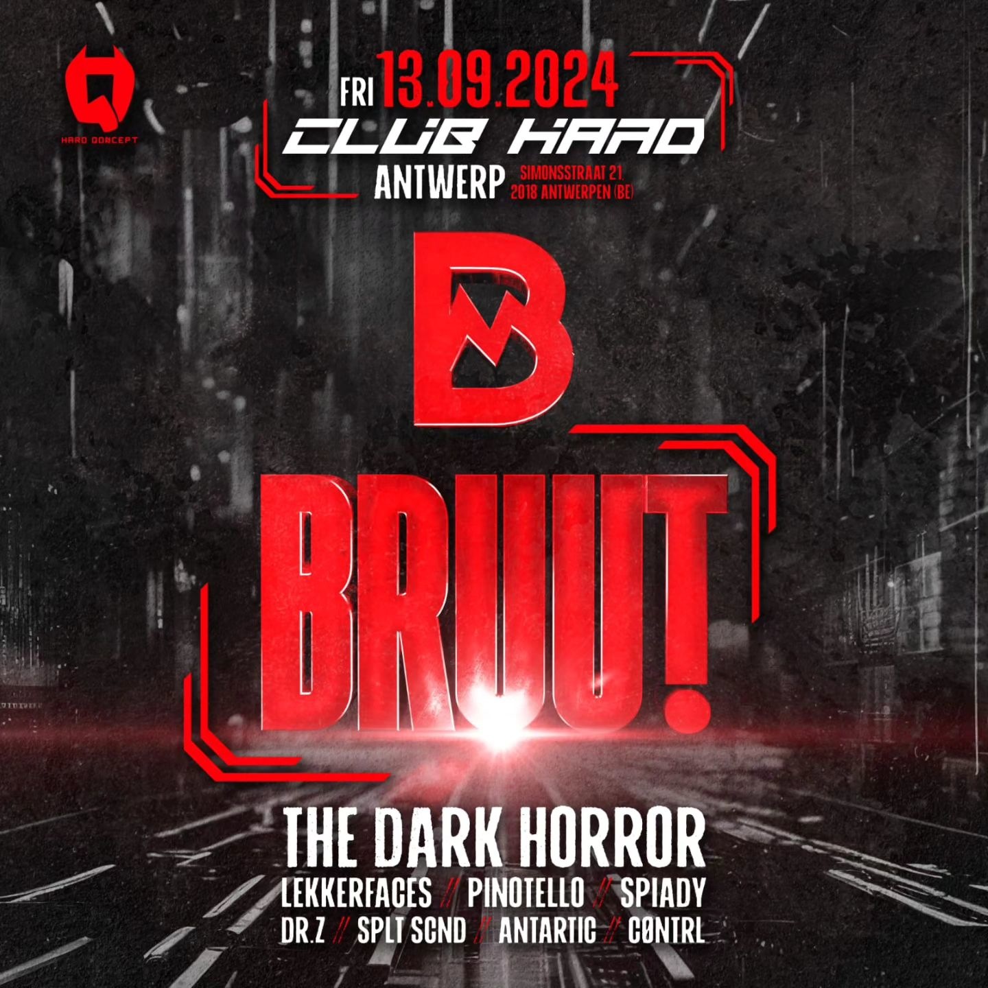 EXTRA INFO: 📍 Club Hard, Simonsstraat 21, 2018 Antwerpen (Belgium) 🕙 Doors: 22:00 🎫 BRUUT! is 18+ only (Physical ID required) No dresscode - No flash - Safe space - No hate Download the app to pay for your drinks: linktr.ee/kasko_antwerp Lockers will be available Parking is possible around the venue or the Q-Park “Antwerp-Central”