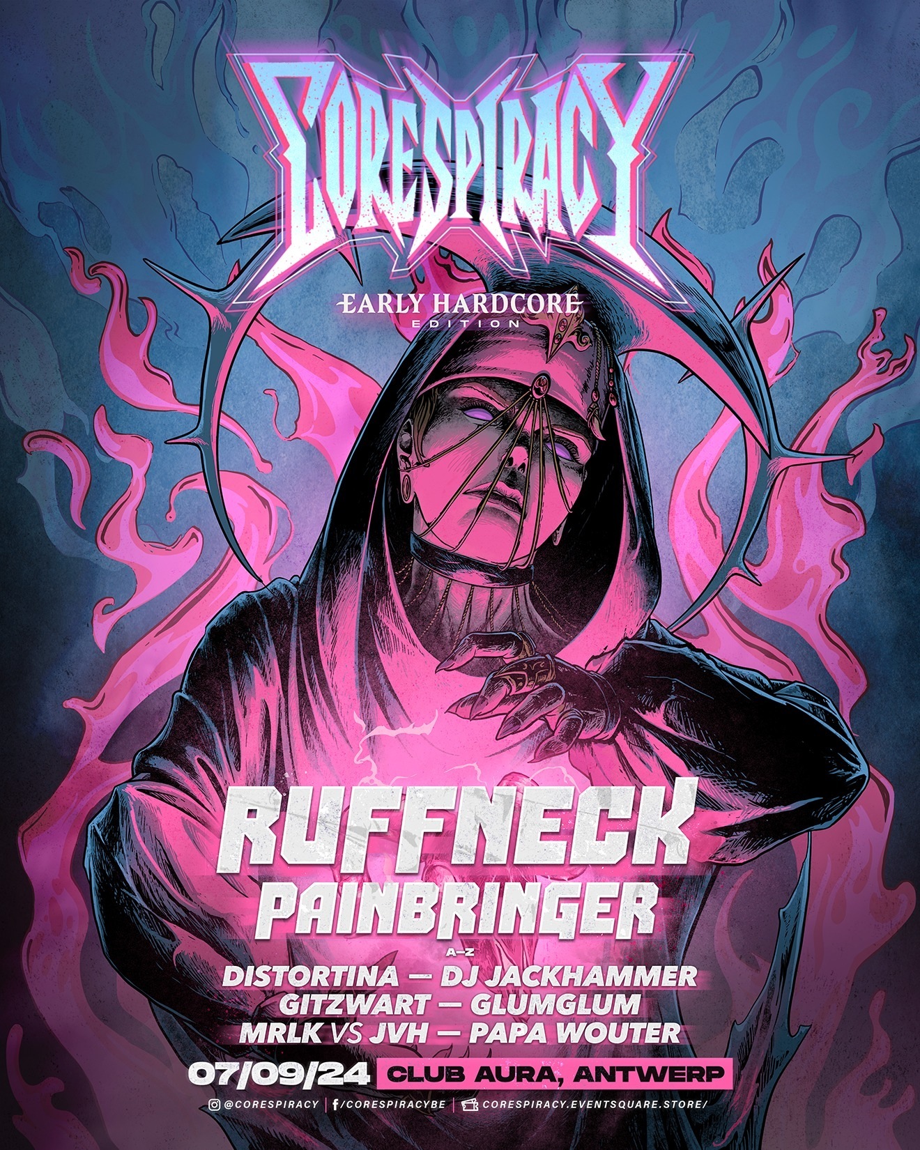 ☠️𝙇𝙄𝙉𝙀𝙐𝙋 𝐑𝐔𝐅𝐅𝐍𝐄𝐂𝐊 𝐏𝐀𝐈𝐍𝐁𝐑𝐈𝐍𝐆𝐄𝐑 𝚊-𝚣 𝐃𝐈𝐒𝐓𝐎𝐑𝐓𝐈𝐍𝐀 𝐃𝐉 𝐉𝐀𝐂𝐊𝐇𝐀𝐌𝐌𝐄𝐑 𝐆𝐈𝐓𝐙𝐖𝐀𝐑𝐓 𝐆𝐋𝐔𝐌𝐆𝐋𝐔𝐌 𝐌𝐑𝐋𝐊 𝐯𝐬 𝐇𝐀𝐕𝐑𝐎𝐒 𝐏𝐀𝐏𝐀 𝐖𝐎𝐔𝐓𝐄𝐑 ─────────────────────────── ☠️𝙏𝙄𝘾𝙆𝙀𝙏𝙎 𝘼𝙑𝘼𝙄𝙇𝘼𝘽𝙇𝙀 𝙉𝙊𝙒! Presale tickets are live with limited early bird options. ⮕ https://corespiracy.eventsquare.store ☠️ 𝙄𝙉𝙁𝙊𝙍𝙈𝘼𝙏𝙄𝙊𝙉: 𝘋𝘖𝘖𝘙𝘚 23:00-07:00 𝘈𝘎𝘌 𝘗𝘖𝘓𝘐𝘊𝘠: 16+ ☠️ 𝙇𝙊𝘾𝘼𝙏𝙄𝙊𝙉: 𝘊𝘓𝘜𝘉 𝘈𝘜𝘙𝘈 - 𝘒𝘰𝘵𝘵𝘦𝘳𝘴𝘵𝘳𝘢𝘢𝘵 1, 𝘈𝘯𝘵𝘸𝘦𝘳𝘱, 𝘉𝘦𝘭𝘨𝘪𝘶𝘮 ─────────────────────────── ☠️𝙎𝙊𝘾𝙄𝘼𝙇𝙎: https://www.facebook.com/corespiracybe https://www.instagram.com/corespiracy