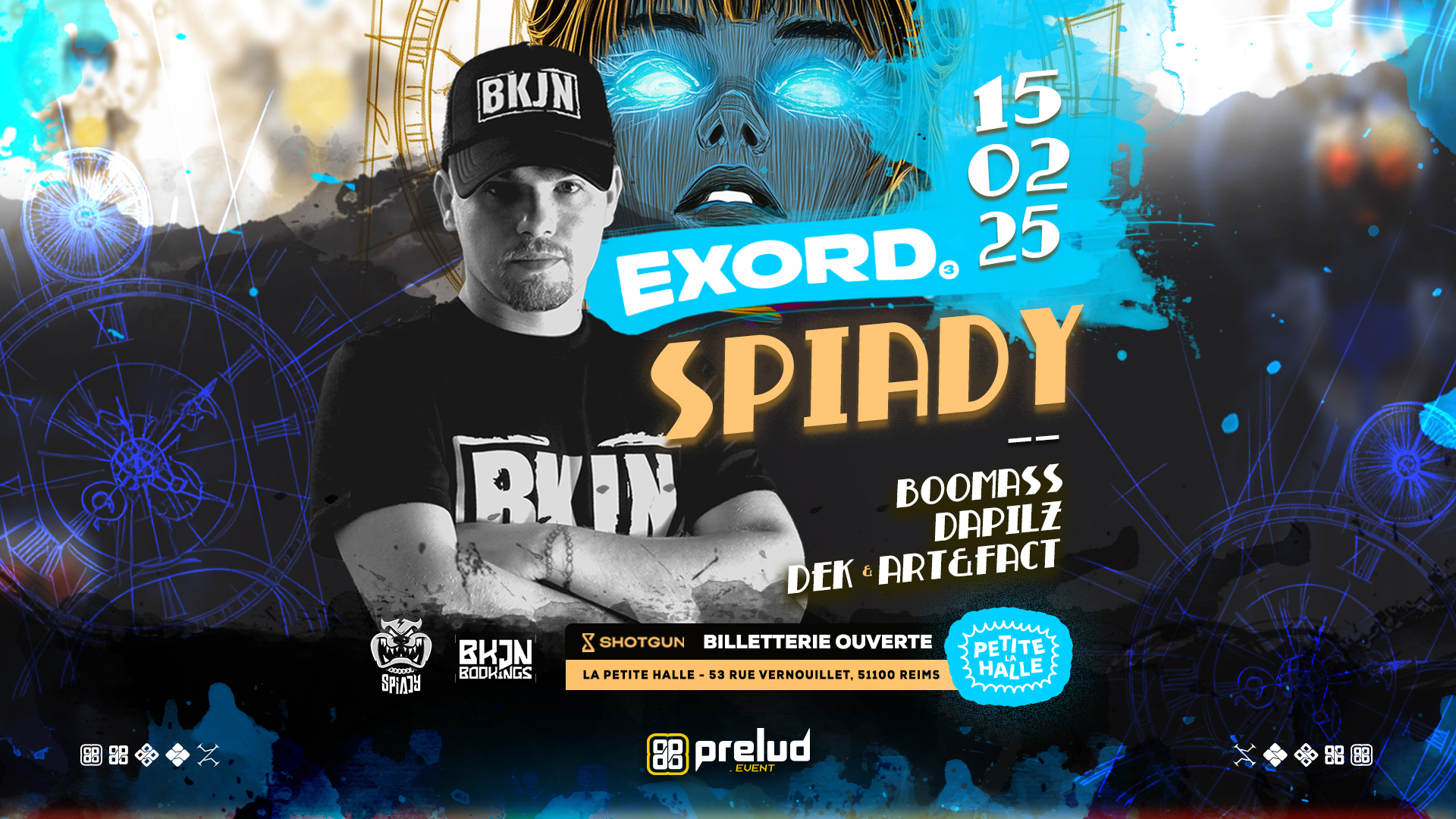 🔵 "NO GODS OR KINGS, ONLY KICKS" à La Petite Halle 🟡 Pour ce début d’année 2025, il fallait frapper fort, et quoi de mieux qu’une EXORD. sous les rythmes de l’Uptempo, du Raw, et du Hardstyle ? 💥 Toute l’équipe Prelud est ravie de vous présenter notre premier artiste de l’année : SPIADY, de l’écurie BKJN 🔥 Line Up : 💣 Spiady (BKJN Event) : Uptempo 💣 Dek & Art&Fact (Turn up Da Bass) : Hardstyle 💣 Dapilz : Rawstyle 💣 Boomass : Hardcore --- Infos Pratiques : 🎟️ Billets (via Shotgun*) : ➡️ 10 € Early ➡️ 13 € Regular ➡️ 15 € Late *Hors frais de vente Shotgun --- ➡️ 15 € sur place (sous réserve de disponibilité) 📍 La Petite Halle - 53 Rue Vernouillet, Reims 🍹 Bar sur place. --- Pour nous soutenir : 👕 Vente de T-shirts Prelud sur place. 🎉 by Prelud.Event