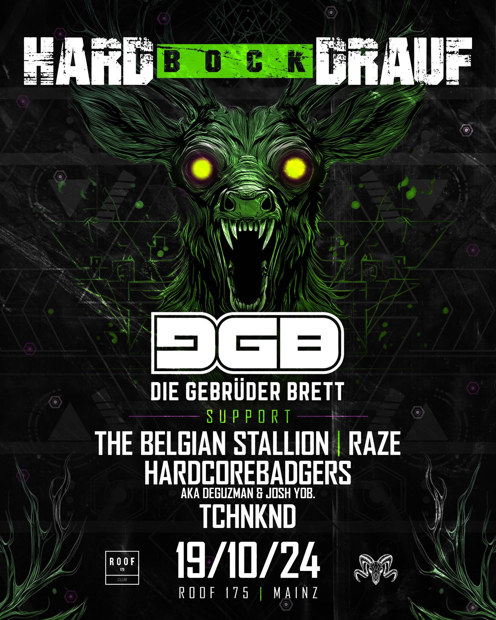 Samstag 19.10.2024 - ROOF 175 Mainz ▔▔▔▔▔▔▔▔▔▔▔▔▔▔▔▔▔▔▔▔▔▔▔ ▔▔▔▔▔▔▔▔▔▔▔▔▔▔▔▔▔▔▔▔▔▔▔ Mainz wir sind zurück für eine weitere Runde Hard Bock Drauf! Und soundtechnisch haben wir gute Freunde eingepackt! Früher eig Stammgast bei uns, deswegen freuen wir uns unglaublich sie wieder an Board zu haben! Mainz geht ready for: DGB - Die Gebrüder Brett! Facettenreichster Sound und Stimmung die ihres gleichen sucht, also perfekte Gäste für diese Nacht! Und weil die Events in Mainz für Harder Styles stehen haben wir beste Bock Power dafür eingepackt! Lieblingsbock und einer der besten Menschen die wir kennen, THE BELGIAN STALLION ist natürlich mit am Start! Genau wie unser Mann für beste Laune und Sound TCHNKND! Auch frechen Badger Sound haben wir diesmal dabei, denn DEGUZMAN und JOSH YOB. werden mit ihrem Brojekt HARDCOREBADGERS ihre härteste Seite zum besten geben! Den Abschluss machen unsere Kollegen aus dem Hause FURY, denn hier wird euch nochmal zum Closing RAZE Uptempo um die Ohren feuern der euch standesgemäß in den morgen entlässt! Leute habt ihr Bock?! Wir haben Hard Bock! Wir sehen uns am 19.10. in Mainz! Eure Hard Bock Crew ▔▔▔▔▔▔▔▔▔▔▔▔▔▔▔▔▔▔▔▔▔▔▔ LINE UP: ✘ DGB - DIE GEBRÜDER BRETT ✘ THE BELGIAN STALLION ✘ RAZE ✘ HARDCORE BADGERS ✘ TCHNKND