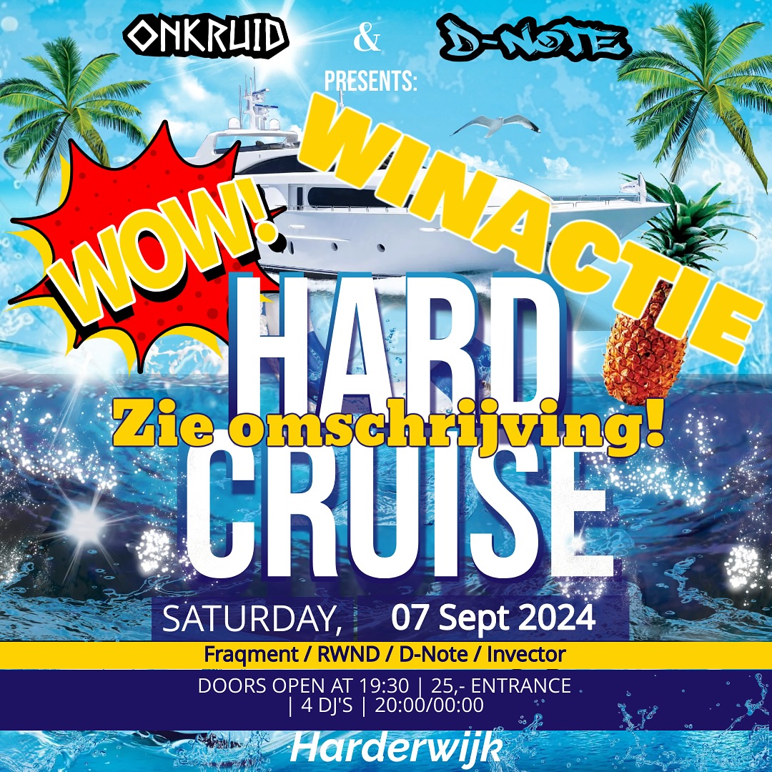 Ben jij klaar voor een onvergetelijke avond vol keiharde beats, zonsondergang en plezier op het water? Sluit je aan bij de spectaculaire HardCruise in samenwerking met D-Note en laat je meevoeren op het ritme van de beste hardstyle tracks terwijl je geniet van de prachtige omgeving van Harderwijk!
