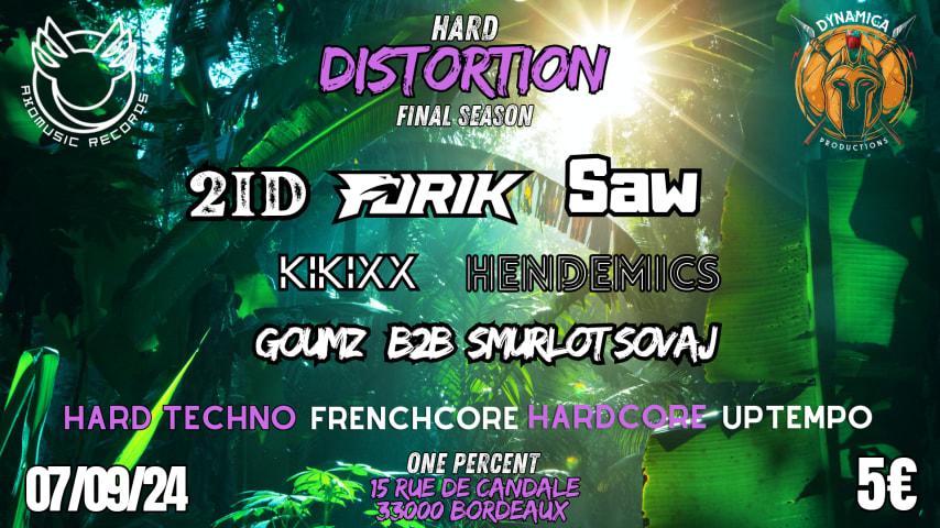 La "HARD DISTORTION" reviens pour la dernière fois Au One Percent a Bordeaux Avec le label AxomusicRecords en collaboration avec la Dynamica production. 😱