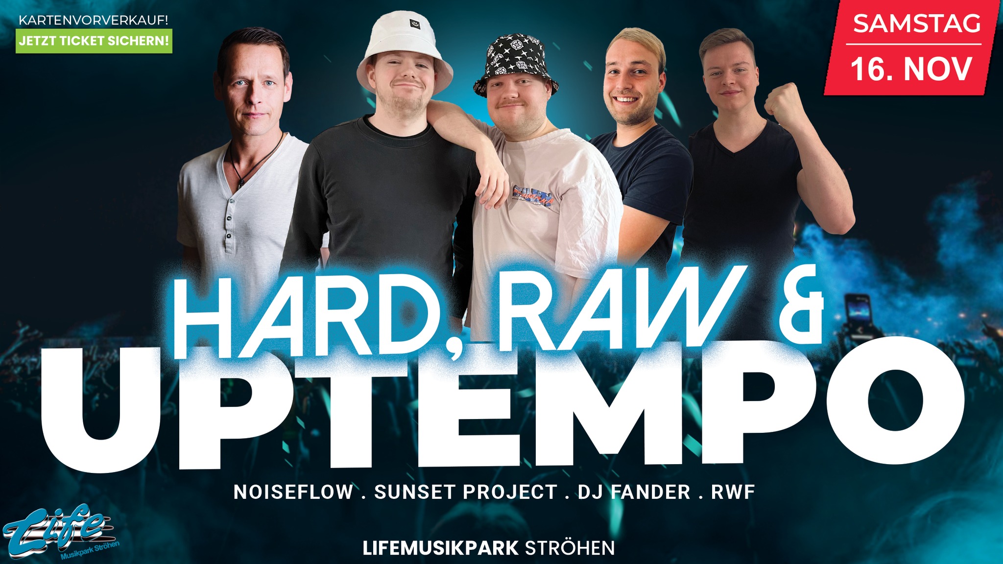𝗛𝗔𝗥𝗗, 𝗥𝗔𝗪 & 𝗨𝗣𝗧𝗘𝗠𝗣𝗢 - S O N D E R E V E N T 𝙎𝙄𝘾𝙃𝙀𝙍𝙀 𝘿𝙄𝙍 𝙅𝙀𝙏𝙕𝙏 𝙀𝙄𝙉𝙀𝙎 𝘿𝙀𝙍 𝙇𝙄𝙈𝙄𝙏𝙄𝙀𝙍𝙏𝙀𝙉 𝙏𝙄𝘾𝙆𝙀𝙏𝙎, 𝘽𝙀𝙑𝙊𝙍 𝙒𝙄𝙍 𝘼𝙐𝙎𝙑𝙀𝙍𝙆𝘼𝙐𝙁𝙏 𝙎𝙄𝙉𝘿! 💥 TICKETS GIBTS HIER: https://ms.ticket.io/blzm27bv/ Einatmen, ausrasten. Wenn 3 Acts das LIFE übernehmen und eine eigene Party planen, wird daraus das wohl härteste Event der ganzen Region! Freut Euch auf eine Nacht mit Hardstyle, Rawstyle und Uptempo - so sehr, wie Ihr diese Styles noch nie erlebt habt! 𝘿𝘼𝙎 𝙇𝙄𝙉𝙀𝙐𝙋 __________ ▶︎ 𝗡𝗢𝗜𝗦𝗘𝗙𝗟𝗢𝗪 Deutschlands meist geklickter Uptempo-Act head of Deutscher Krach | Let this on ride | Wait for me 🔊 SC: https://soundcloud.com/noiseflowsound 📲 TT: https://www.tiktok.com/@noiseflowsound ▶︎ 𝗦𝗨𝗡𝗦𝗘𝗧 𝗣𝗥𝗢𝗝𝗘𝗖𝗧 Momentum, Your Own Creation 📲 IG: https://instagram.com/sunsetprojectmusic 📲 TT: https://www.tiktok.com/@sunsetprojectmusic ▶︎ 𝗗𝗝 𝗙𝗔𝗡𝗗𝗘𝗥 📲 www.instagram.com/_fabian.sander_ ▶︎ 𝗥𝗪𝗙 📲 www.instagram.com/rwf_krach/ ________________________________________ 💥 KARTENVORVERKAUF: https://ms.ticket.io/blzm27bv/ ________________________________________ 𝗛𝗔𝗥𝗗, 𝗥𝗔𝗪 & 𝗨𝗣𝗧𝗘𝗠𝗣𝗢 📍 LIFEMUSIKPARK Ströhen S O N D E R V E R A N S T A L T U N G Einlass ab 22.00 Uhr | Zutritt ab 16 Jahren mit notwendigen Formularen + Begleitpersonen möglich