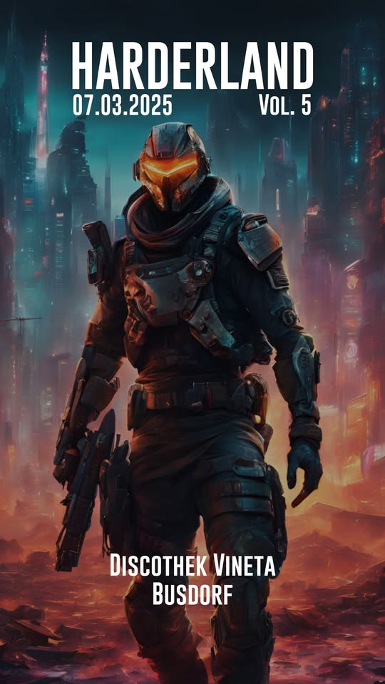 WE ARE BACK ! LETS CELEBRATE TOGETHER THE 5th EDITION OF HARDERLAND! 🎉 Am 07. März starten wir mit euch auf eine Reise in eine neue unbekannte postapokalyptische Welt. Neben einem neuen spannenden Bühnenbild erwartet euch neue spannende Headliner und Support DJ's aus der Harder Styles Szene. ☠️ 𝗟𝗶𝗻𝗲𝘂𝗽 TBA ☠️ 𝗧𝗶𝗰𝗸𝗲𝘁𝘀 DIESMAL KEIN VORVERKAUF !!! ☠️ 𝗘𝗶𝗻𝗹𝗮𝘀𝘀 ab 21:30 Uhr ☠️ 𝗔𝗻𝗿𝗲𝗶𝘀𝗲 / 𝗟𝗼𝗰𝗮𝘁𝗶𝗼𝗻 Discothek Vineta Thorshammer 10 24866 Busdorf ☠️ 𝗥𝘂𝗹𝗲𝘀 AB 16 JAHREN MIT MUTTIZETTEL AUSWEIS & TASCHEN KONTROLLE KEINE DROGEN KEINE GEWALT KEINE DISKRIMINIERUNG KEINE SCHLECHTE LAUNE 𝗠𝗶𝘁 𝗠𝘂𝘁𝘁𝗶𝘇𝗲𝘁𝘁𝗲𝗹 & 𝗔𝘂𝗳𝘀𝗶𝗰𝗵𝘁𝘀𝗽𝗲𝗿𝘀𝗼𝗻! (Maximal 1 Minderjährige pro Aufsichtsperson) ➡️ https://disco-vineta.de/muttizettel ℹ️ 𝗪𝗶𝗿 𝗔𝗸𝘇𝗲𝗽𝘁𝗶𝗲𝗿𝗲𝗻: ✅ Personalausweis ✅ Führerschein ✅ Reisepass