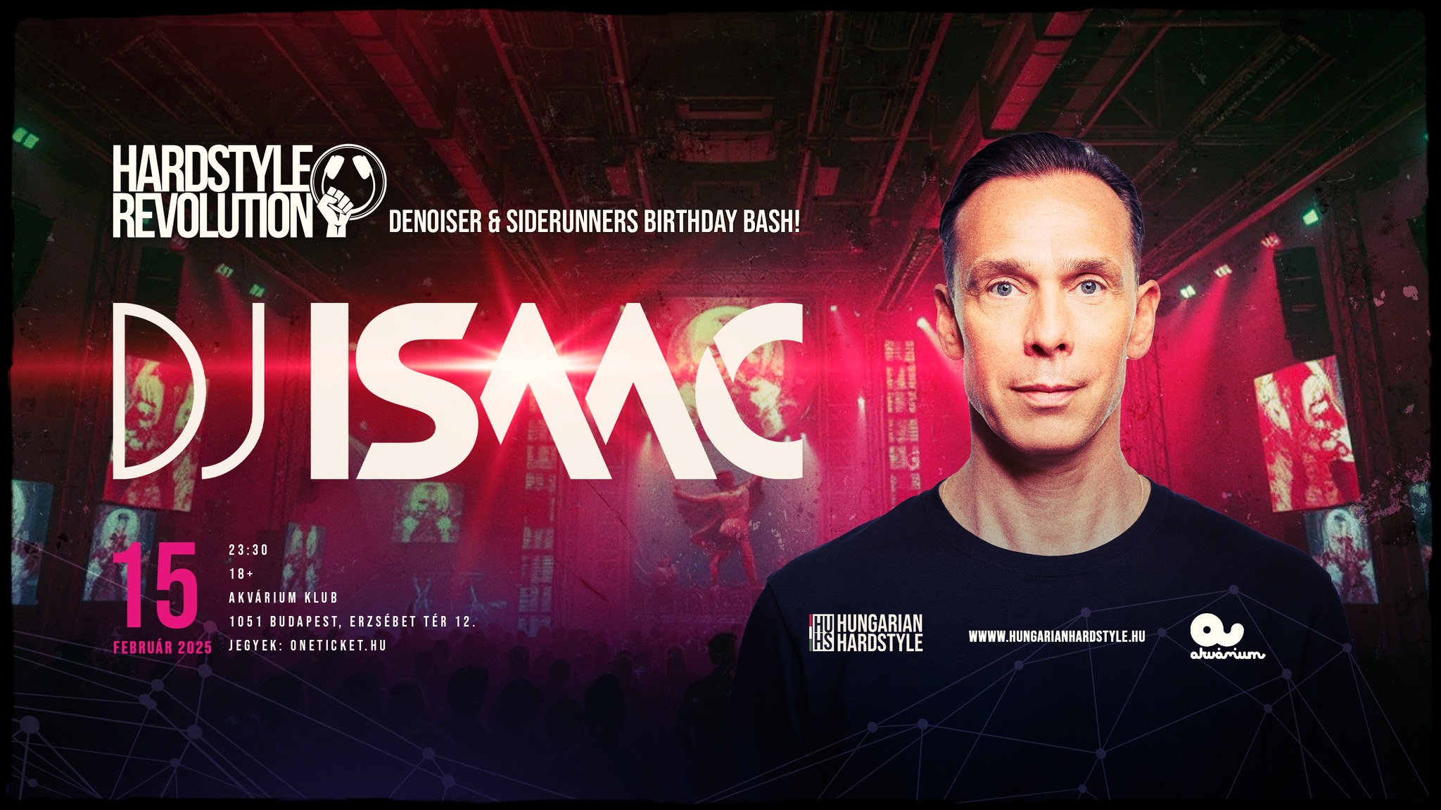 Hardstyle Revolution // Akvárium Klub // February 15, 2025 Get ready for an extraordinary night at Akvárium Klub! The next Hardstyle Revolution event brings a true legend to Budapest: DJ Isaac, one of the icons of the Dutch hardstyle scene, will headline the night with an unforgettable set. This event is even more special as we’ll also celebrate the joint birthday of Denoiser and Siderunners! Expect a high-energy, unique party filled with hard-hitting beats and an incredible atmosphere. 🎵 Full lineup coming soon! 🎟️ Get your tickets: https://bit.ly/hsrevdjisaac