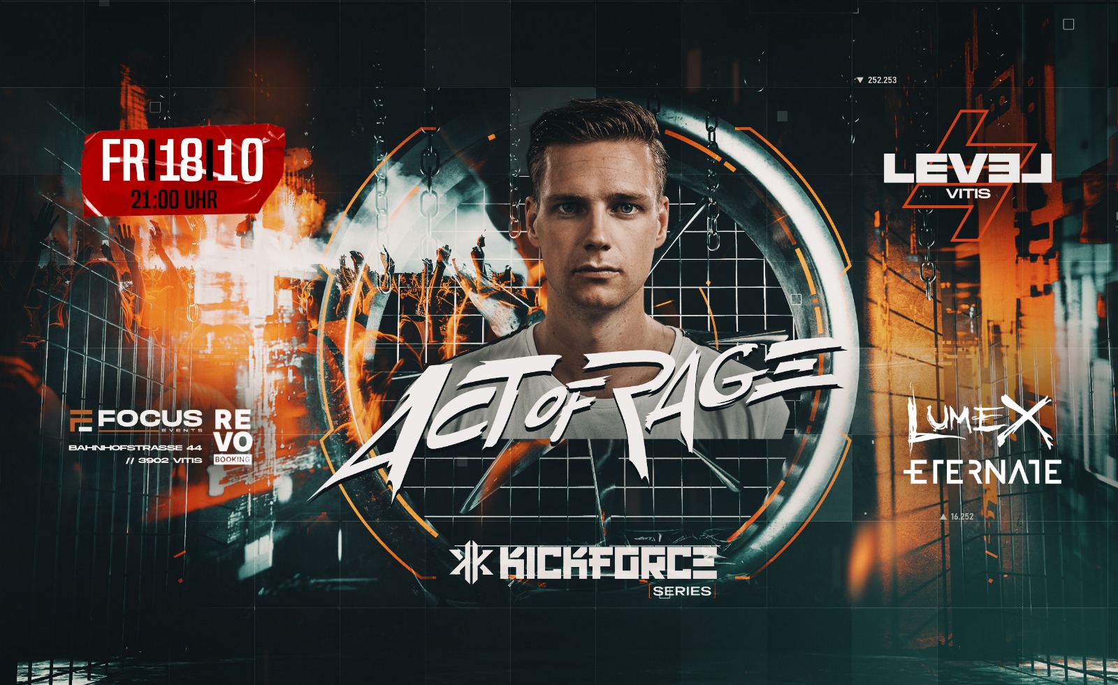 ❌KICKFORCE Clubseries Level Vitis & Kickforce Event Series present: ACT OF RAGE Die Nacht der harten Klänge: Hardstyle, Raw, Rawtempo, Hardcore, Uptempo, Frenchcore alles was scheppert. Be prepared for this madness! #LINEUP: #ACT OF RAGE https://www.instagram.com/actofrage?utm_source=ig_web_button_share_sheet&igsh=ZDNlZDc0MzIxNw== support: #SOVERO #LUMEX #ETERNATE #DIRTYRAZE kickforce series #HARDSTYLE #RAW #HARDCORE #UPTEMPO HARD FACTS: 🌐 FRI // 18 // OKT // 2024 🌐 21.00 Uhr 🌐 Bahnhofstraße 44 // 3902 Vitis 🌐 NEXT LEVEL Licht- und Tontechnik 🌐 LEVEL Clubfloor 🌐 LEVEL Stadl 🌐 PUNCH CLUB Cocktailbar 🌐 VIP Lounge 🌐 FRIENDS Lounge 🚧 Der freshe Club in Niederösterreich. // EINLASS AB 16 JAHREN mit amtlichen Lichtbildausweis // Bahnhofstation direkt vorm Lokal (Franz Josefs Bahn) // Bahnhofstraße 44 / 3902 Vitis / Niederösterreich // office@level-club.at