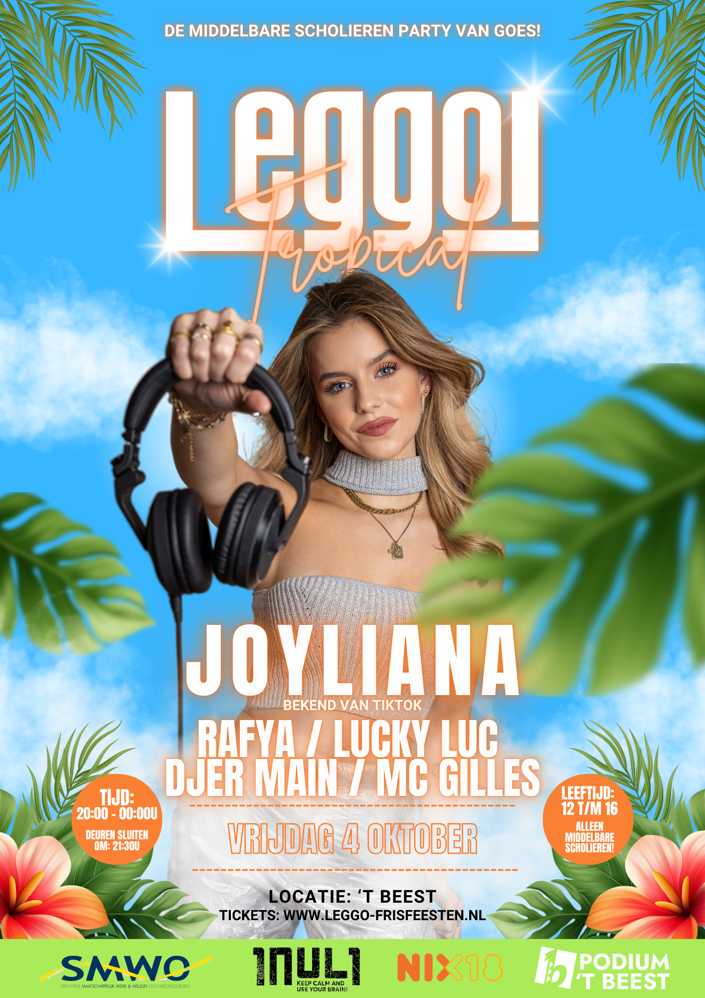 Leggo! is terug, dit keer op een nieuwe locatie! Op vrijdag 4 oktober wordt de zomer herbeleefd tijdens Leggo! Tropical editie. Een avond waarin iedereen voor één nacht naar een tropisch eiland reist. Haal dus je mooiste zomerse shirt weer uit de kast, zet je zonnebril op, smeer je in met zonnebrand en dans op de heetste beats vanuit de nieuwe locatie: 't Beest in Goes. Zorg dat je je tickets op tijd in de voorverkoop haalt, want vol = vol!