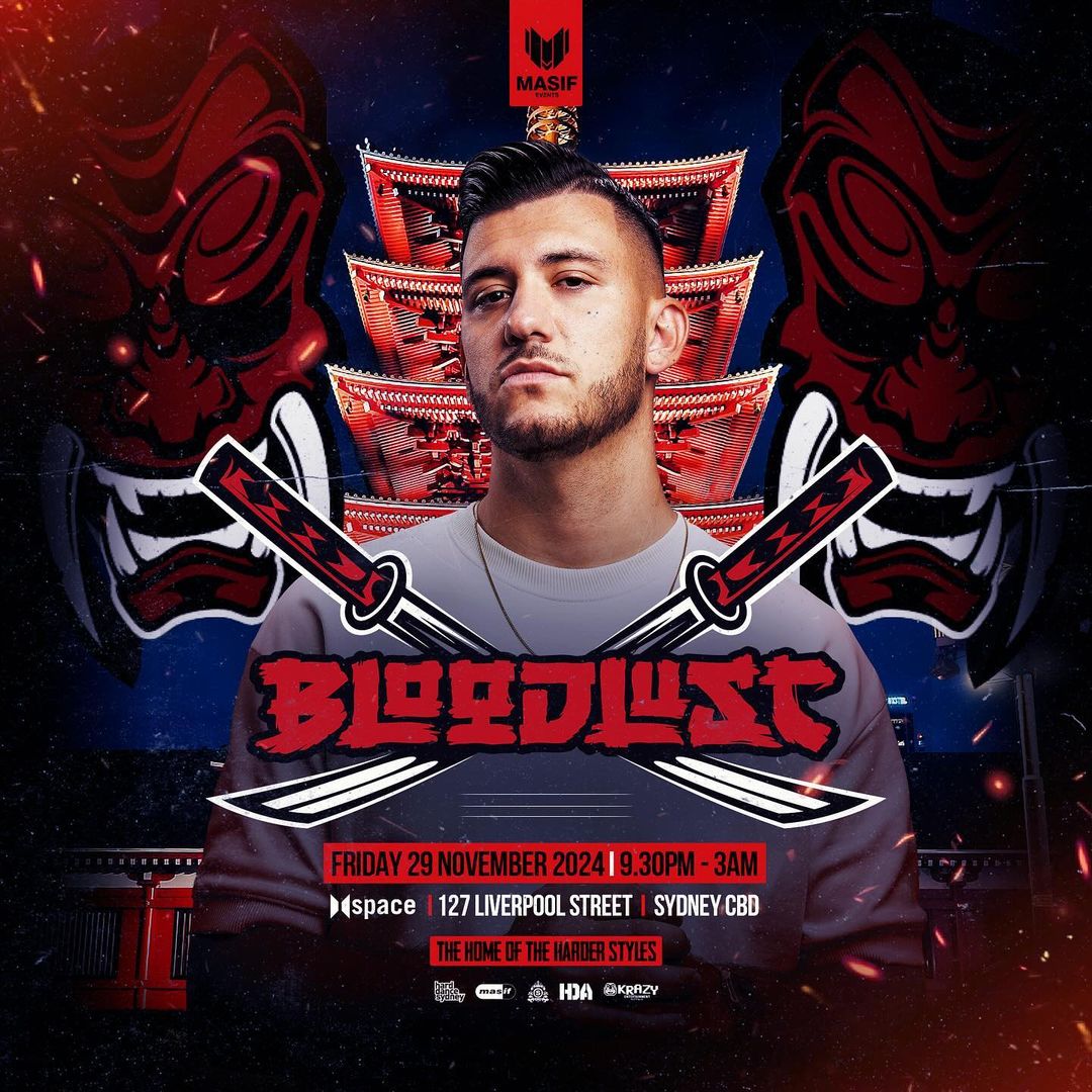 One of the hottest acts around debuts at MASIF on Friday, November 29th! BLOODLUST is set to unleash his presence in the main room with a peak time hi octane set of epic proportions! Two rooms of mayhem coupled with full on production...and YOU on the dancefloor! FULL LINEUP TBA "Because everything is MASIF...so is BLOODLUST...and so are YOU!" TICKET INFO: - ONLINE TICKETS via TICKETBOOTH are from $30+bf at: fanlink.tv/masiftix - NO name changes on tickets. - Maximum 8 tickets per transaction. - Name must match valid Government approved ID on the door. BOOTH BOOKINGS: Please message the MASIF EVENTS Facebook page for GROUP or BOOTH bookings! SPACE DRESS CODE: No track pants or trackies. Tights are OK. No drawstring type shorts. (Shorts must have belt loops and be of the dressier kind). No singlets. No hats. If in doubt, we recommend you make a little more effort. The dress code isn't strict but there are limits. Don't miss out on a great night out because you look too casual. * Management reserves the right to refuse entry. ================================================= FACEBOOK: Masif Events Masif GVNG Hard Dance Sydney