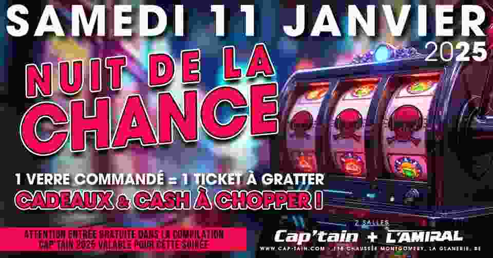 SAMEDI 11 JANVIER 2025 ▶️ NUIT DE LA CHANCE 🍀 🍸 1 Verre commandé = 1 Ticket à gratter 🎟️ 🎁💰 CADEAUX & CASH à chopper ! ❌ CAP'TAIN [Room 1] 🔊 RONALD-V 🔊 LOIC-D 🔊 C-NOIZE 🔊 BONNY 🔊 SEAK (Final Hardcore) ❌ à L'AMIRAL [Room 2] 🙂 AKLIX 🙂 LIL STEEVE ❌❌TARIF : 15€❌❌ (Vente sur place uniquement - Pas de prévente) ⚠️ Entrée gratuite dans la compilation CAP'TAIN 2025 valable pour cette soirée. ▬▬▬▬▬▬▬▬▬ 🔴 OUVERTURE À 22.00 🔴 ÂGE MINIMUM : 16 ANS 🔴 PARKING GRATUIT 🔴 VESTIAIRE GRATUIT 🔴 TOILETTES GRATUITES 🔴 2 ESPACES FUMEURS ▬▬▬▬▬▬▬▬▬ TOUTES LES PROCHAINES SOIRÉES ▶️ http://www.cap-tain.com/agenda SITE INTERNET ▶️ http://www.cap-tain.com/ FACEBOOK OFFICIEL ▶️ http://www.facebook.com/complexecaptain SNAPCHAT ▶️ captainofficial INSTAGRAM ▶️ http://www.instagram.com/complexecaptain YOUTUBE CAP'TAIN TV ▶️ http://www.youtube.com/CaptainOfficial SOUNDCLOUD ▶️ https://soundcloud.com/complexe-captain/ EM@IL ▶️ contact@cap-tain.com COMPLEXE CAP'TAIN 118 chaussée Montgomery 7611 LA GLANERIE (BELGIUM)