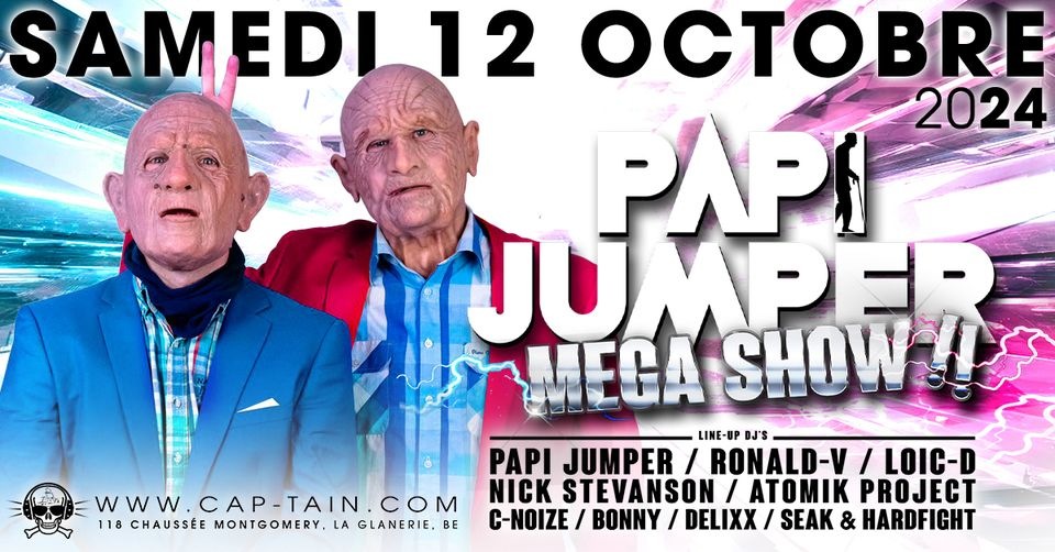 SAMEDI 12 OCTOBRE 2024 ▶️ PAPI JUMPER - MEGA SHOW !! 🎧 LINE UP DJ’s ❌ CAP'TAIN [Room 1] 🔊 PAPI JUMPER (Mega Show Live) 🔊 RONALD-V 🔊 LOIC-D 🔊 NICK STEVANSON 🔊 ATOMIK PROJECT 🔊 C-NOIZE 🔊 BONNY 🔊 DELIXX 🔊 SEAK & HARDFIGHT (Final Hardcore) ❌ à L'AMIRAL [Room 2] 🔊 AKLIX 🔊 LIL STEEVE ❌❌TARIF : 15€❌❌ (Vente sur place uniquement - Pas de prévente) Accès à tout le COMPLEXE ▬▬▬▬▬▬▬▬▬ 🔴 OUVERTURE À 22.00 🔴 ÂGE MINIMUM : 16 ANS 🔴 PARKING GRATUIT 🔴 VESTIAIRE GRATUIT 🔴 TOILETTES GRATUITES 🔴 2 ESPACES FUMEURS ▬▬▬▬▬▬▬▬▬ TOUTES LES PROCHAINES SOIRÉES ▶️ http://www.cap-tain.com/agenda SITE INTERNET ▶️ http://www.cap-tain.com/ FACEBOOK OFFICIEL ▶️ http://www.facebook.com/complexecaptain SNAPCHAT ▶️ captainofficial INSTAGRAM ▶️ http://www.instagram.com/complexecaptain YOUTUBE CAP'TAIN TV ▶️ http://www.youtube.com/CaptainOfficial SOUNDCLOUD ▶️ https://soundcloud.com/complexe-captain/ EM@IL ▶️ captain1993.contact@gmail.com COMPLEXE CAP'TAIN 118 chaussée Montgomery 7611 LA GLANERIE (BELGIUM)