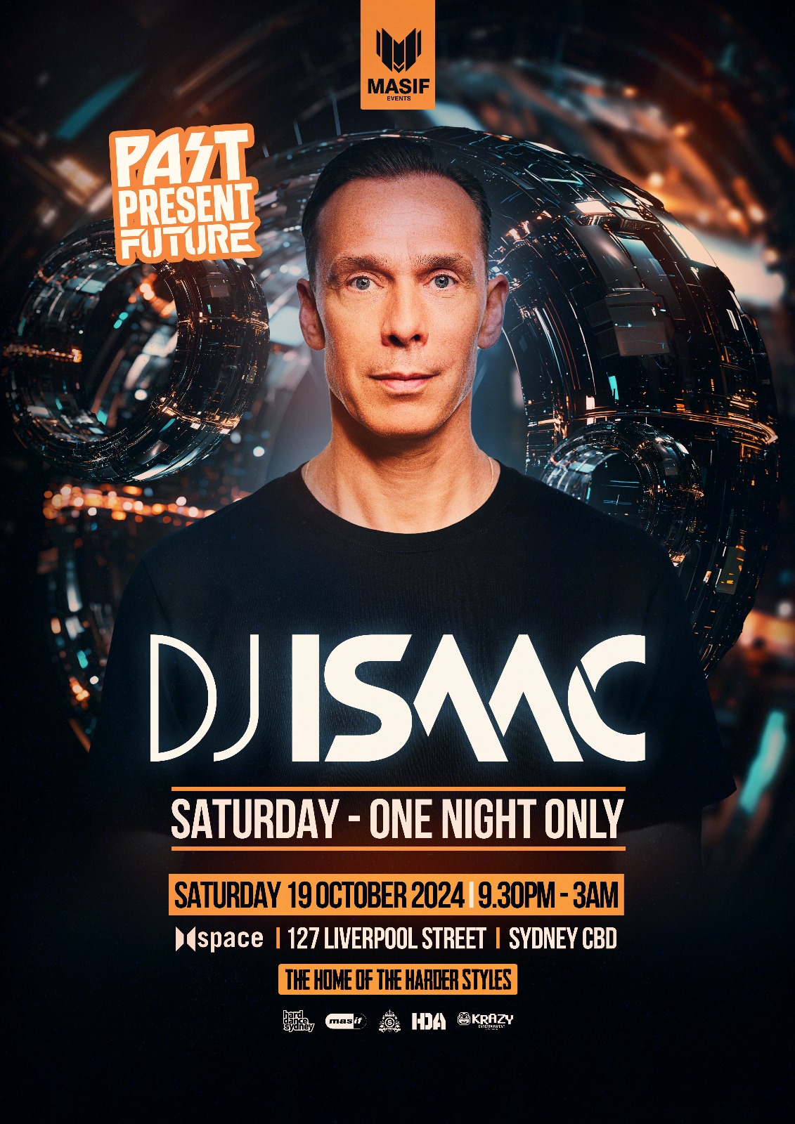 For the first time in a long while, the legendary ISAAC is returning to Australia for some headline club shows! Mark your calendar for SATURDAY, OCTOBER 19TH, and get ready for an epic night at the HOME OF THE HARDER STYLES! MASIF Saturdays will be in full swing, with both arenas pumping out amazing tunes and top-tier production... and don't forget, YOU will be part of it!