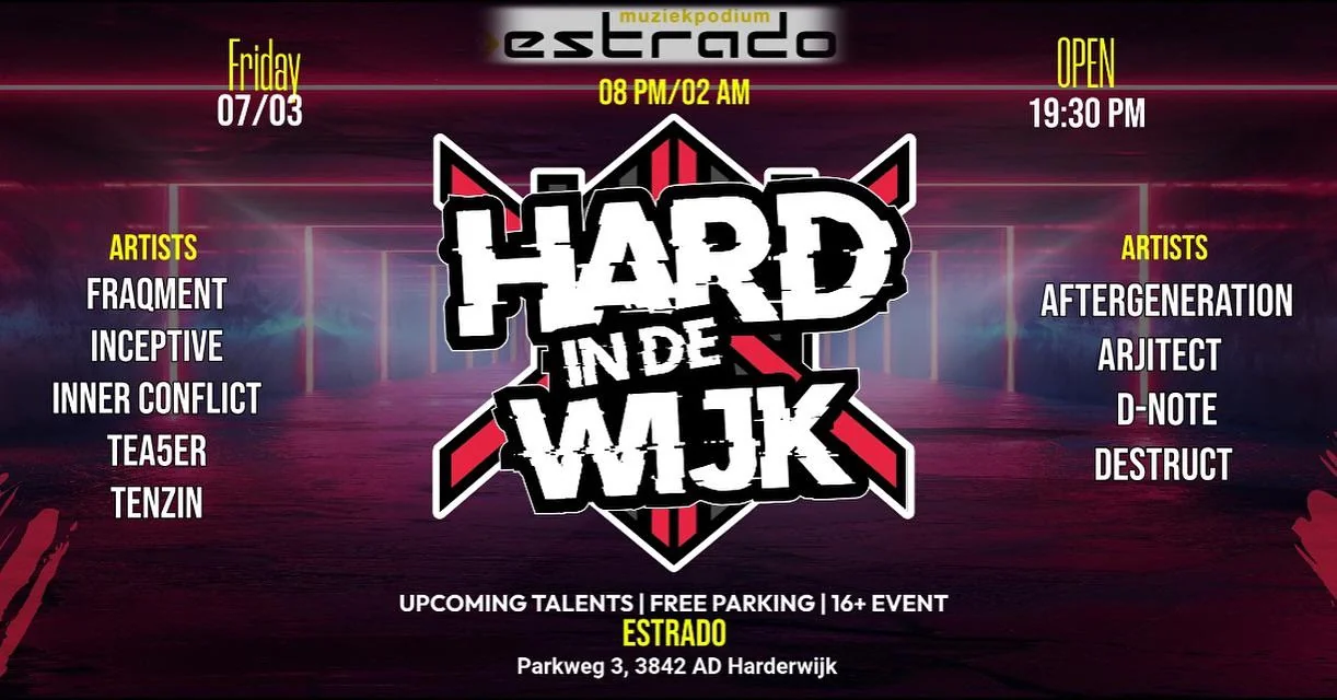 Ben jij klaar om de grond te laten beven? Maak je op voor een avond vol keiharde beats, energieke vibes en de beste Talent Harddance-acts van Nederland. HARD In De WIJK is hét nieuwe evenement dat de Harddance-scene in Harderwijk op de kaart zet!