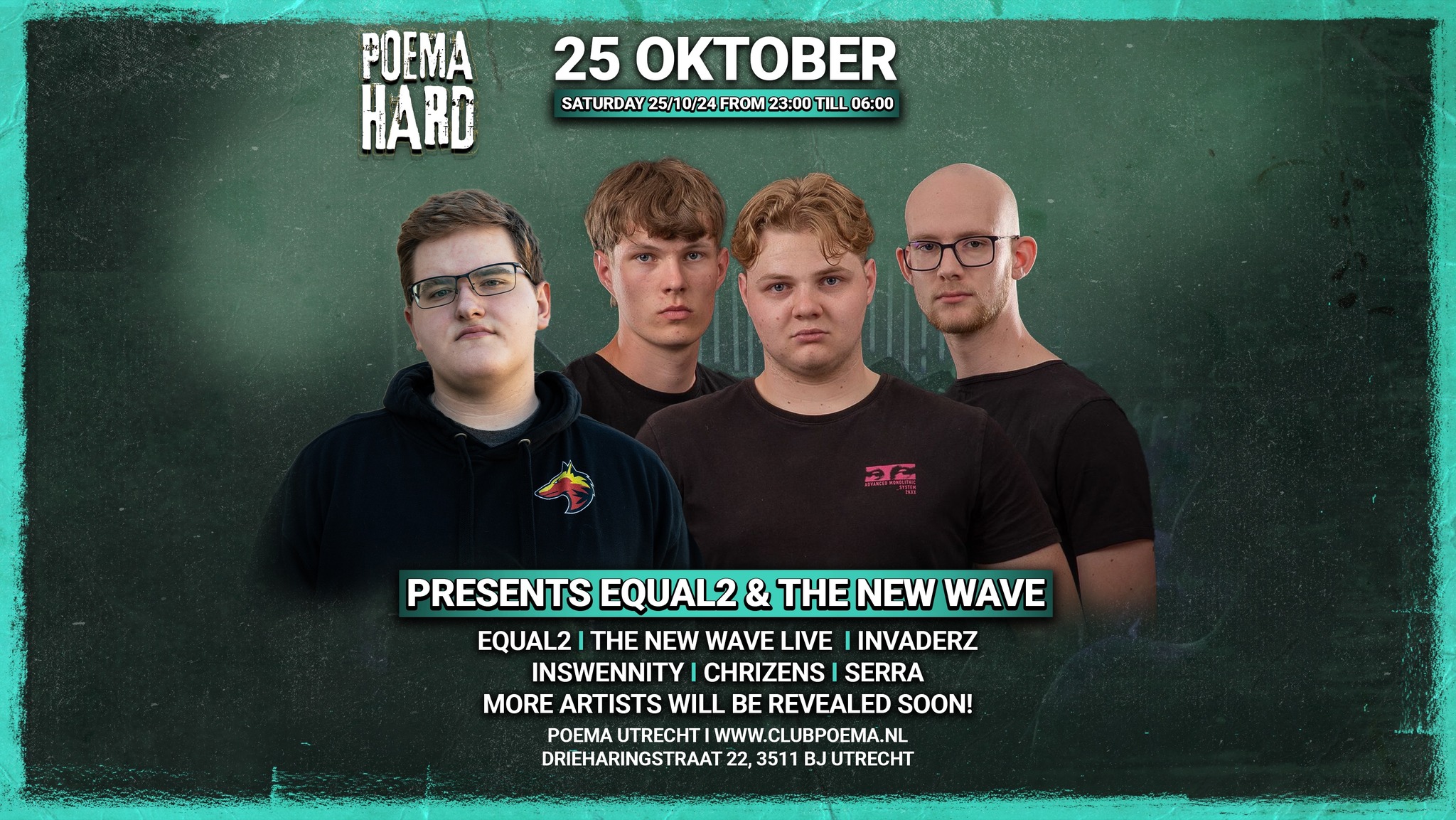 Vrijdag 25 oktober staat een primeur op het programma bij Poema Hard in Utrecht🔥. Voor de allereerste keer komt niemand minder dan Equal2 uit Amerika naar Nederland voor zijn eerste Nederlandse boeking ooit🤩. In combinatie met The New Wave belooft dit een exclusief, eenmalig event te worden dat je absoluut niet mag missen‼️