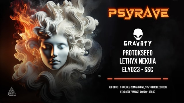 Rendez-vous le vendredi 7 mars au RED CLUB à Tours avec GRAViiTY, PROTOKSEED, LETHYX NEKUIA, ELY023 et SSC.
