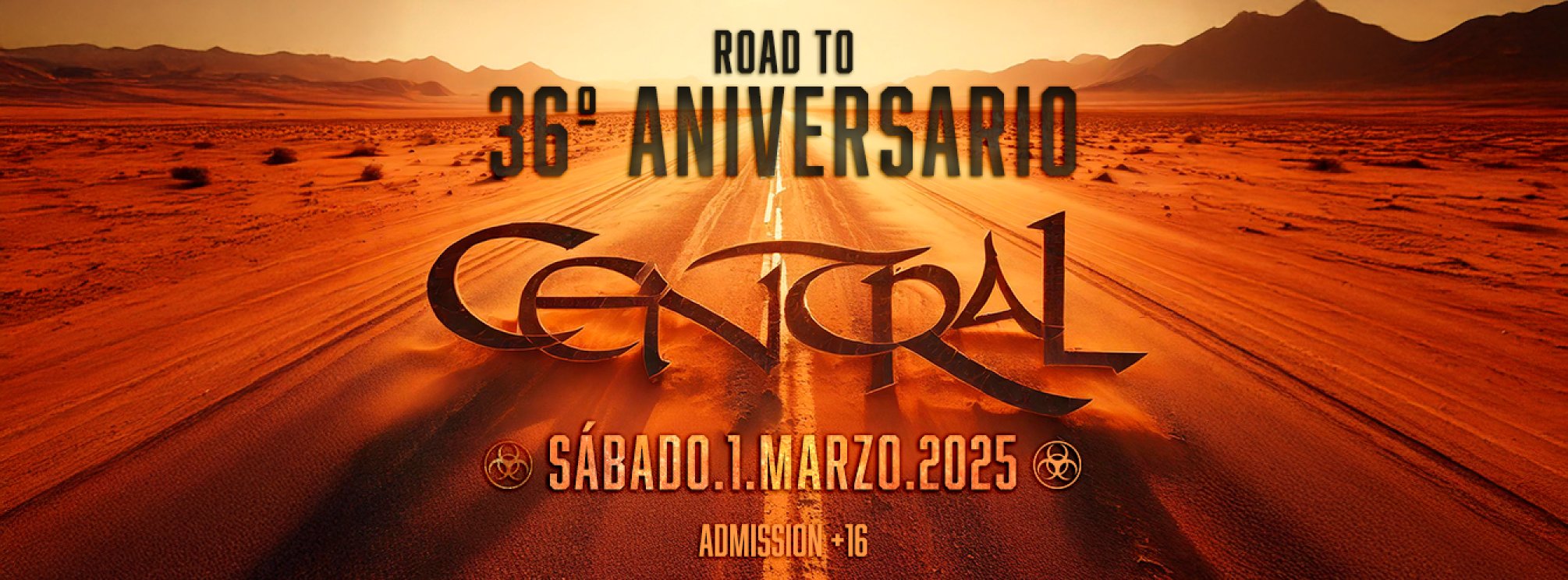 Este 1 de marzo, cuando las estrellas guíen a todos los que andan perdidos y el viento dirija tu camino , Central abrirá sus puertas para el 36 Aniversario. Sigue las señales!!! La noche promete una tregua y una chispa de humanidad, unión, sentimientos y desenfreno en un mundo que lo ha olvidado todo. Las diferencias se disuelven y los corazones vuelven a latir al ritmo de una música que desafía al destino. Una sola noche donde las reglas cambian y los supervivientes recordaremos porqué luchamos año tras año…. Cuando llegue el día, cuando llegue la hora, no lo pienses. Si quieres vivir, si quieres sobrevivir, únete a nosotros en Central, donde el caos y destrucción se convertirán en vida, unión y sonrisas porque será nuestro momento … 36 ANIVERSARIO CENTRAL
