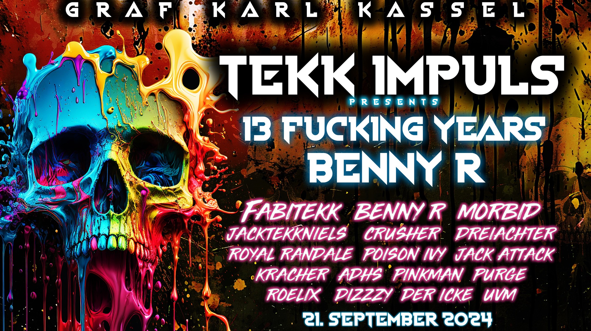Line-Up: ❌ FABITEKK ❌ BENNY R ❌ MORBID ❌ CHEAPEX ❌ JACKTEKKNIELS ❌ CRUSHER ❌ DREIACHTER ❌ ❌ ❌ POISON IVY ❌ ROYAL RANDALE ❌ KRACHER ❌ ADHS ❌ JACK ATTACK ❌ PINKMANN ❌ PURGE ❌ RÖHLIX ❌ DIZZZY ❌ DER ICKE