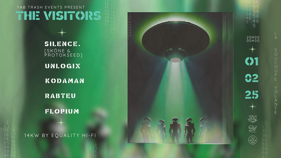 🚀 Des visiteurs! Venu d'ailleurs! Hooooooooooooo! 👽 Yab Trash vous invite une nouvelle fois à La Soucoupe Volante pour la première boom boom de 2025! Mais cette fois, on vous ramène du lourd, du très très lourd! 🔥 Entre Sköne et Protokseed qui reviennent poser un pied sur notre cailloux pour nous présenter leur duo inédit : Silence., mais aussi Unlogix, l'alien français de la progressive trance, sans oublier les deux nouvelles étoiles montantes de la scène rave : Kodaman et Rabteu! Et bien sûr, notre Merguez préférée : Flopium! 🌭 Et pour encore plus de fun, venez déguisé(e)s! 🎭 Il y aura une petite récompense pour le meilleur déguisement. Le thème ? Tout ce qui touche à la culture OVNI / extraterrestre. De Obi-Wan au Docteur, en passant par le Xénomorphe, prépare ton TARDIS ou ton X-Wing pour un voyage interstellaire! 🌌👾 Equality Hi-Fi nous sort un sacré stack dans la grande salle et ça promet! 🎶 Comme d'habitude : •👍 Sortie non définitive • 🍗 Nourriture sur place • 🔥 Fire Show • 🛒 Stand/Market Et en plus cette fois : • 📽 Mapping by NonameNoface • ✨ Décoration intergalactique Billetterie sur Shotgun bientôt! Stay tuned! 🚀💫 Tarifs : • Early : 20€ • Regular : 25€ • Late : 27€ • Last/Sur place : 30€ Le code à été décrypté, nous avons une gagnante ! Félicitations à elle qui aura sa place assuré pour cette soirée de dingue! 18 21 18 20 14 25 20 26 23 19 10 1 14 24 24 20 19 14 8 10 21 20 26 23 26 19 10 21 17 6 8 10 12 23 6 25 14 10 (non je donnerais pas la clef. Oui tu peux essayer de trouver avec une IA ou un programme, mais tu n'en a pas vraiment besoin. Seul le premier à trouver aura la récompense)