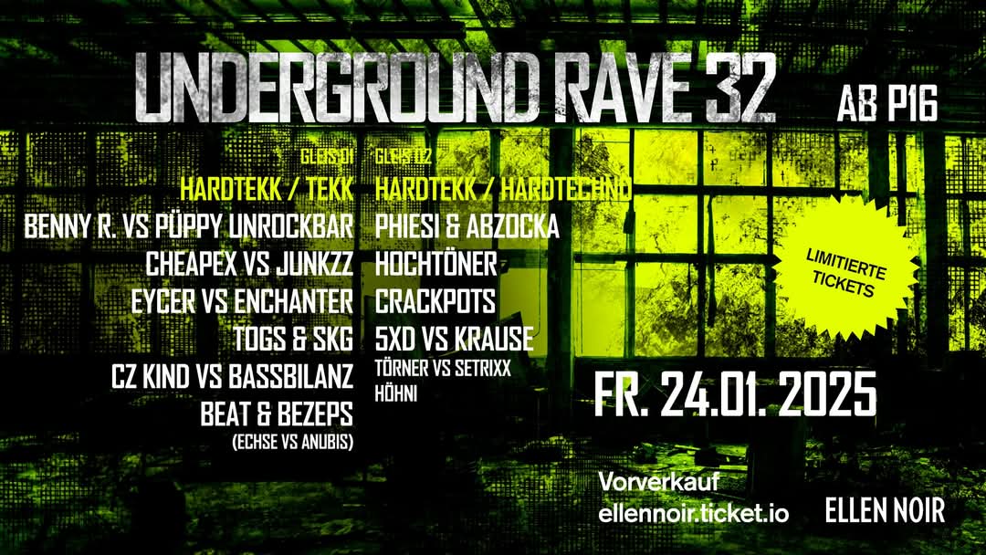 UNDERGROUND RAVE 32 / 2 FLOORS / 21 ACTS / HARDTEKK / UPTEMPO / HARDTECHNO