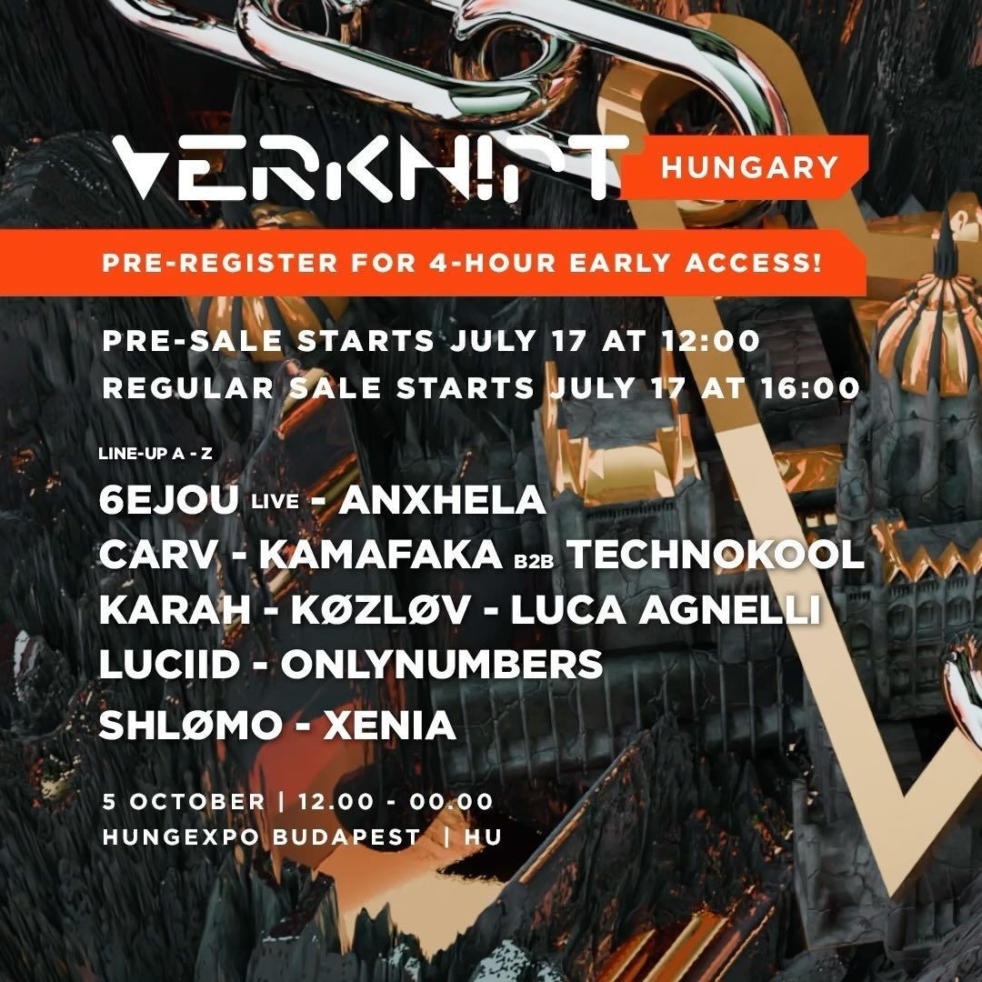 Ti kérted, és itt van: a Verknipt október 5-én ismét visszatér Magyarországra! 🥵 Az előző eseményünk után már alig vártuk, hogy újra találkozzunk a magyar raverekkel! Ezúttal egy nappali hard techno élményre készülhettek 😏☀️ De ne aggódj – a legkeményebb hard techno előadók és a Verknipt lenyűgöző show-ja még mindig a program része, és még időben hazaérsz, hogy kipihend magad vasárnapra!
