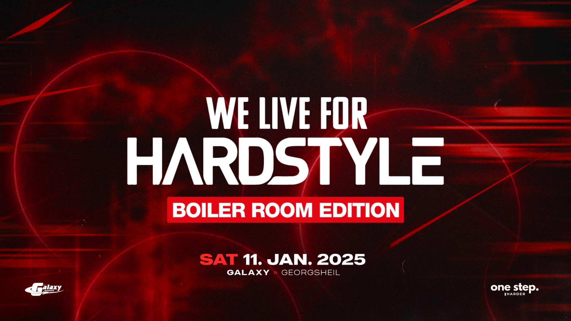 𝗪𝗘 𝗟𝗜𝗩𝗘 𝗙𝗢𝗥 𝗛𝗔𝗥𝗗𝗦𝗧𝗬𝗟𝗘 𝗚𝗘𝗛𝗧 𝗜𝗠 𝗚𝗔𝗟𝗔𝗫𝗬 𝗜𝗡 𝗗𝗜𝗘 𝗟𝗘𝗧𝗭𝗧𝗘 𝗥𝗨𝗡𝗗𝗘! 𝗔𝗕𝗘𝗥 𝗣𝗦𝗦𝗦𝗦𝗧... 𝗪𝗜𝗥 𝗛𝗔𝗕𝗘𝗡 𝗗𝗔 𝗡𝗢𝗖𝗛 𝗘𝗜𝗡𝗘 𝗥𝗜𝗖𝗛𝗧𝗜𝗚 𝗙𝗘𝗧𝗧𝗘 𝗙𝗜𝗡𝗔𝗟𝗥𝗨𝗡𝗗𝗘 𝗙Ü𝗥 𝗘𝗨𝗖𝗛 𝗚𝗘𝗣𝗟𝗔𝗡𝗧! 🔥 ✖ WE LIVE FOR HARDSTYLE "BOILER ROOM EDITION" ✖ GALAXY GEORGSHEIL ✖ 11.01.2025 ⚠️ WIR BAUEN EUCH DAS DJ PULT MITTEN AUF DIE TANZFLÄCHE! (360° STAGE) ⚠️ 🎫 𝙎𝙄𝘾𝙃𝙀𝙍𝙏 𝙀𝙐𝘾𝙃 𝘿𝙄𝙀 𝙏𝙄𝘾𝙆𝙀𝙏𝙎! 👉 https://eventix.shop/852q4rzm LINE-UP: ► THE STRAIKERZ ► DR. DONK ► RESENSED ► KAIZAR ► VIUZ ► NICK CODY B2B MACLO ► INMATE ▀▀▀▀▀▀▀▀▀▀▀▀▀▀▀▀▀▀▀▀ 🎫 ONLINE VVK (zzgl. VVK-Gebühren): ❌ BLIND TICKET: 8,- EURO (AUSVERKAUFT!) ❌ EARLY BIRD: 12,- EURO (AUSVERKAUFT!) ❌ VVK-STUFE I: 15,- EURO (AUSVERKAUFT!) 🟢 VVK-STUFE II: 18,- EURO 💰 Eintritt : ➡ Ab 16 Jahren (mit Muttizettel + erwach. Begleitung)