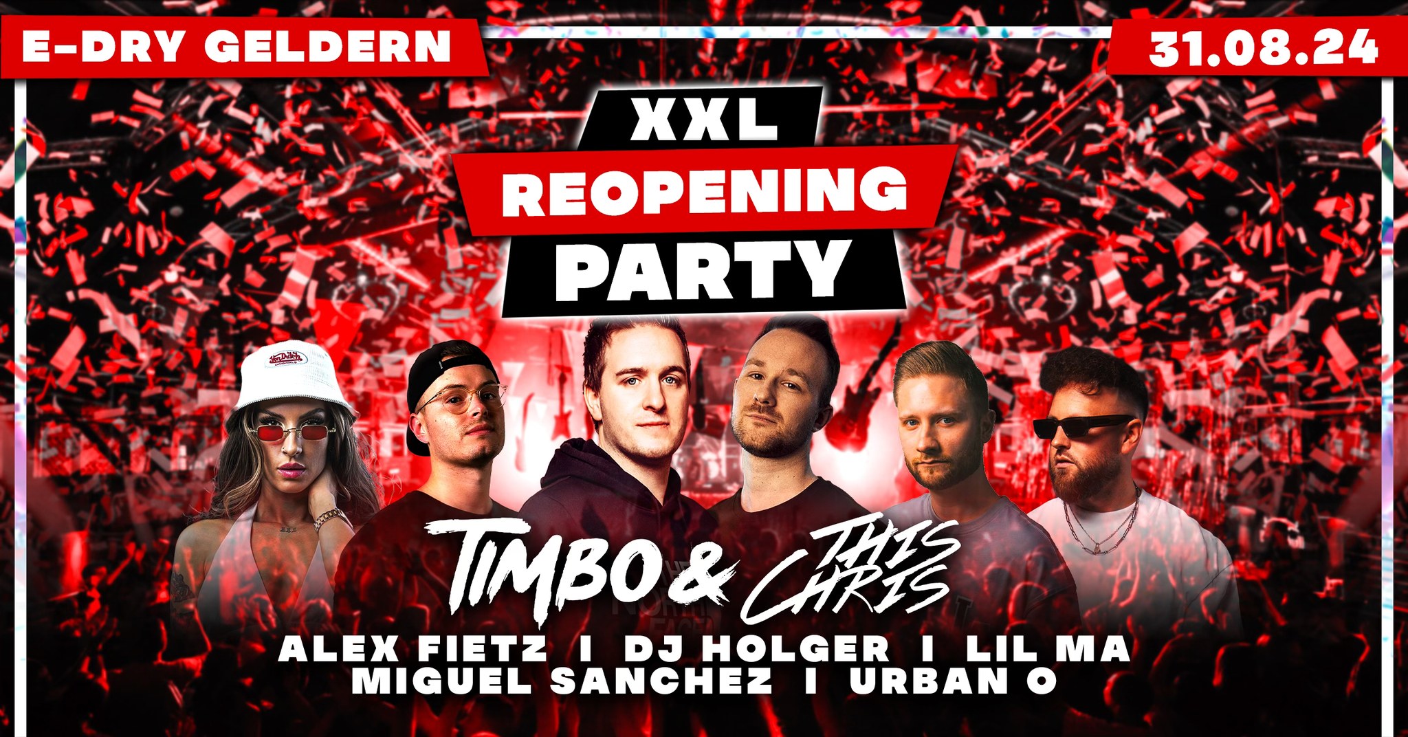 Wir feiern am 31.08. das große Reopening nach der E-Dry Sommerpause🔥 An diesem Abend liegt eine ganz besondere Stimmung in der Luft, denn wir beamen euch in eine andere, bunte, laute, ausgefallene Location mit aufwändiger Deko, spektakulären Acts und vielen weiteren Specials!😍 Es erwarten euch noch viele weitere Überraschungen🍻 ✘✘✘ LINE UP ✘✘✘ ▶︎ MAIN FLOOR - EDM, Techno & Harder Styles - ⭕️ Timbo & This Chris ⭕️ Alex Fietz ⭕️ Miguel Sanchez ▶︎ BLACK MUSIC FLOOR - Deutschrap, Hip-Hop & Black - ⭕️ DJ URBAN O ⭕️ LIL MA ▶︎ WEISSE - Charts, Schlager & Party Hits - ⭕️ DJ Holger ✘✘✘ SPECIALS ✘✘✘ ▶︎ DIE ERSTE PARTY NACH DER SOMMERPAUSE ▶︎ FREIGETRÄNK FÜR ALLE BIS 01 UHR ▶︎ ABRISS AUF 3 FLOORS & 7 DJS ▶︎ XXL KONFETTI & GLITERREGEN ▶︎ CO2 & PYRO BOOSTER ▶︎ FREE GIVE AWAYS 🎟 TICKETS 🎟 👉🏼Ticket im Vorverkauf: 11,90€ inkl. Freigetränk bis 1 Uhr 👉🏼Abendkasse: 15€ inkl. Freigetränk bis 1 Uhr Die Abendkasse ist ab 22 Uhr die ganze Nacht für euch geöffnet! ℹ️ INFOS ℹ️ ・ Datum: Samstag, 31.08.2024 ・ Einlass ab 22 Uhr ・ Ende 5 Uhr ・ E-DRY Geldern ・ 18+ (keine Muttizettel) ❤️ Wir verlosen 10 x FREIKARTEN unter Allen, die diese Veranstaltung TEILEN!