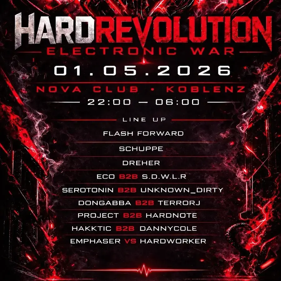HARD REVOLUTIONDannyCole . DonGabba . Dreher . Eco . Emphaser . Flash Forward . Hakktic . Hardnote . Hardworker . Project . S.D.W.L.R. . Schuppe . Serotonin . TerrorJ . Unknown_Dirty . |